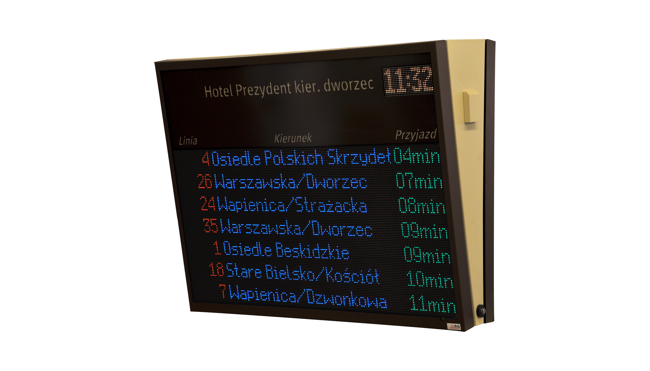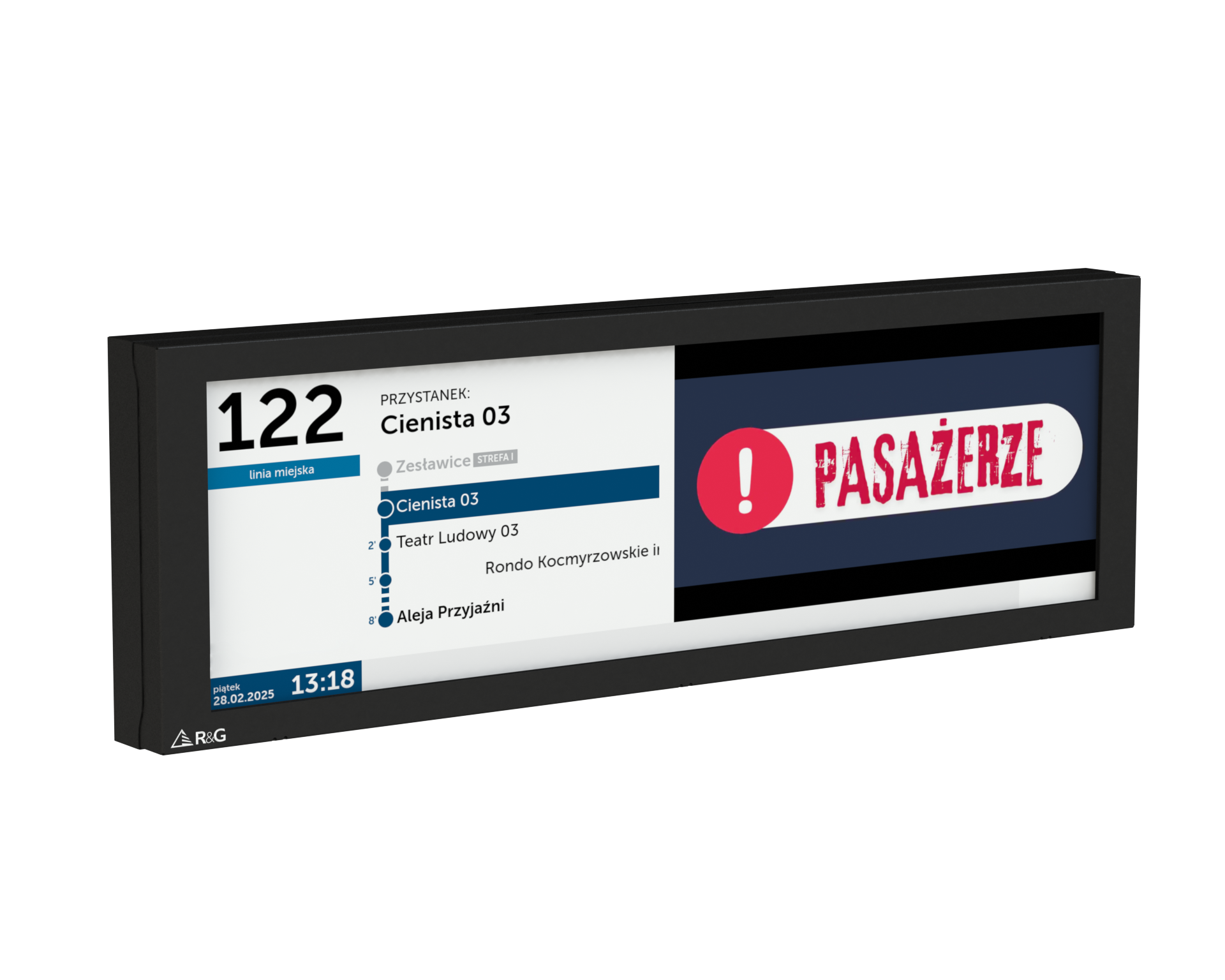 - przekazywanie informacji wizualnej dla pasażerów w pojazdach komunikacji zbiorowej poprzez prezentowanie statycznych i dynamicznych treści na tablicach zewnętrznych i wewnętrznych,