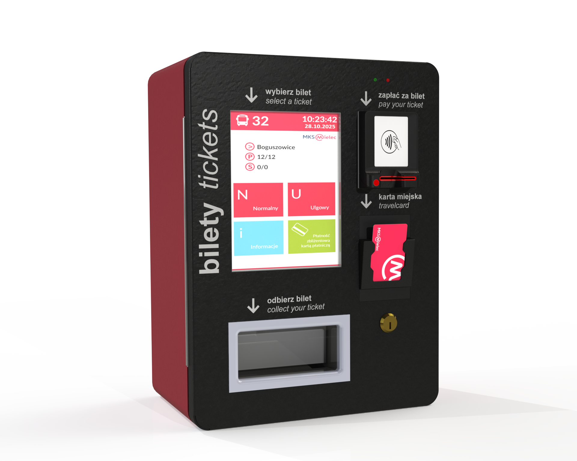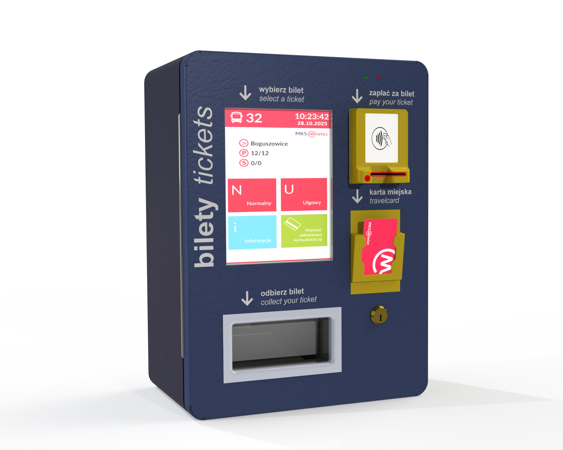Automaty biletowe to nowoczesne urządzenia umożliwiające samodzielny zakup biletów komunikacji miejskiej. Montowane są zarówno wewnątrz pojazdów (autobusy, tramwaje, pociągi) jako mobilne punkty sprzedaży, jak i w wersji stacjonarnej – na przystankach, przy dworcach oraz węzłach przesiadkowych.