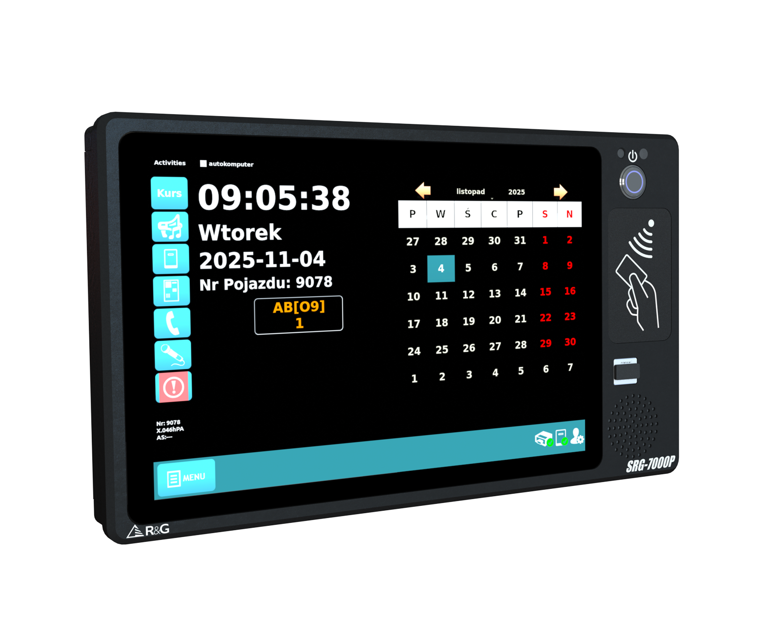 W zależności od modelu, komputer pokładowy umożliwia logowanie kierowcy za pomocą karty zbliżeniowej, klucza Dallas lub kodu PIN wpisywanego na ekranie dotykowym. Panel może pełnić również funkcję monitora podglądu kamer – w tym kamery cofania – zapewniając kierowcy lepszą kontrolę nad sytuacją w pojeździe.